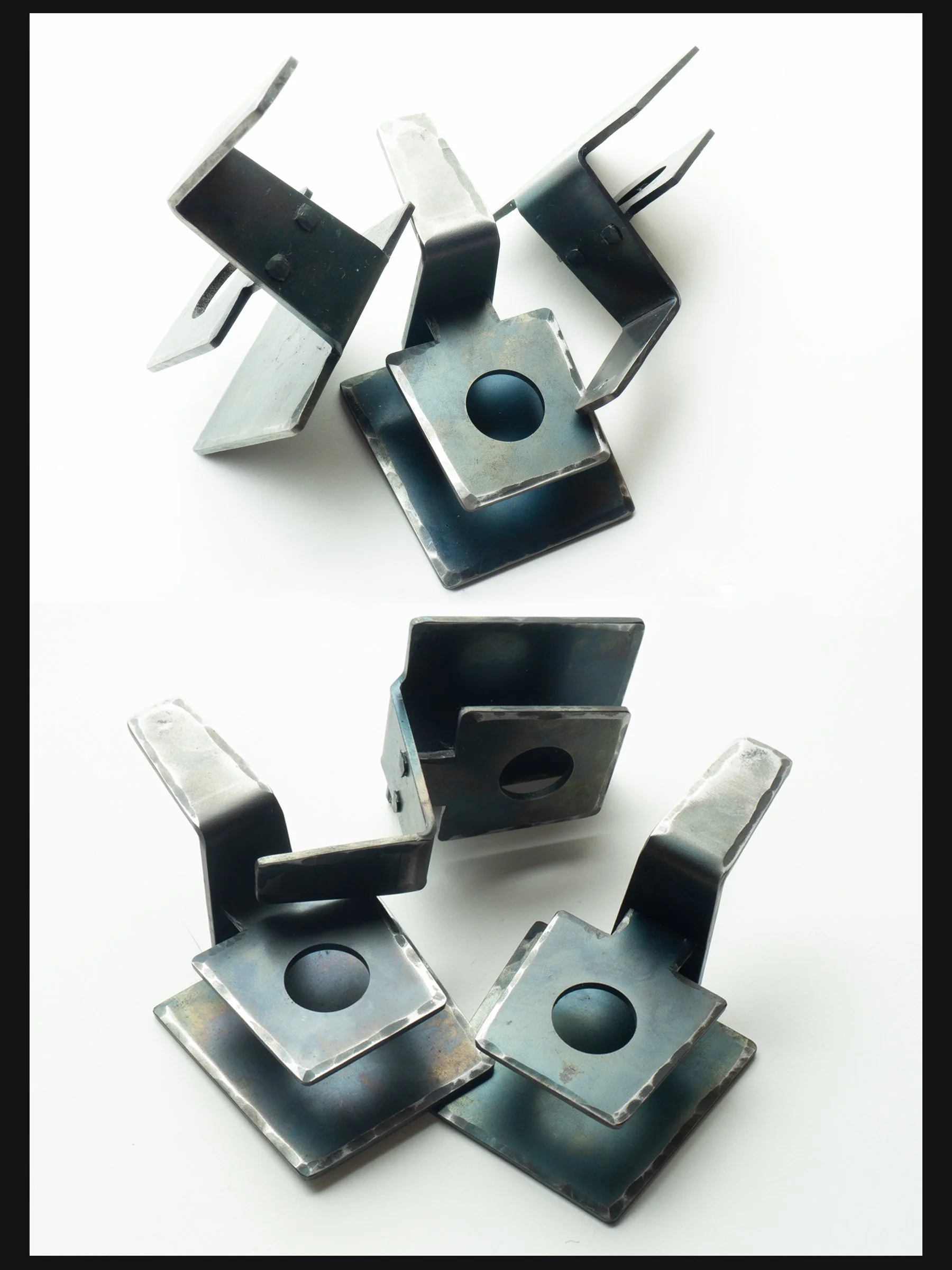 Both rustic and brutalist, this candle holder is at home on a dining table, by the bath tub, or on a bedside dresser. Features a riveted metal platform with a hole that snugly fits a 7/8” tapered candle. The extruded tab allows the user to carry the candle from room to room throughout your evening. The holder was designed specifically for a Danica 13” tapered candle, the perfect made-in-Maine pair.